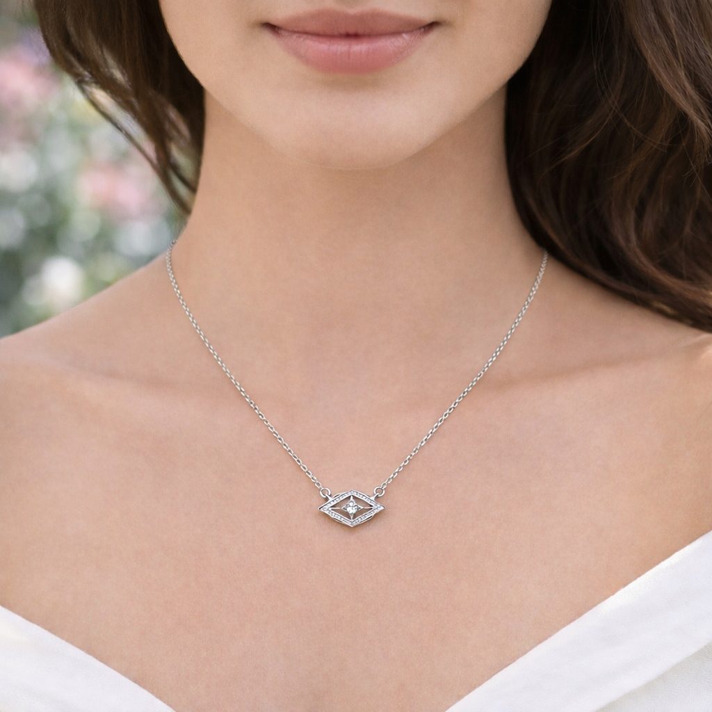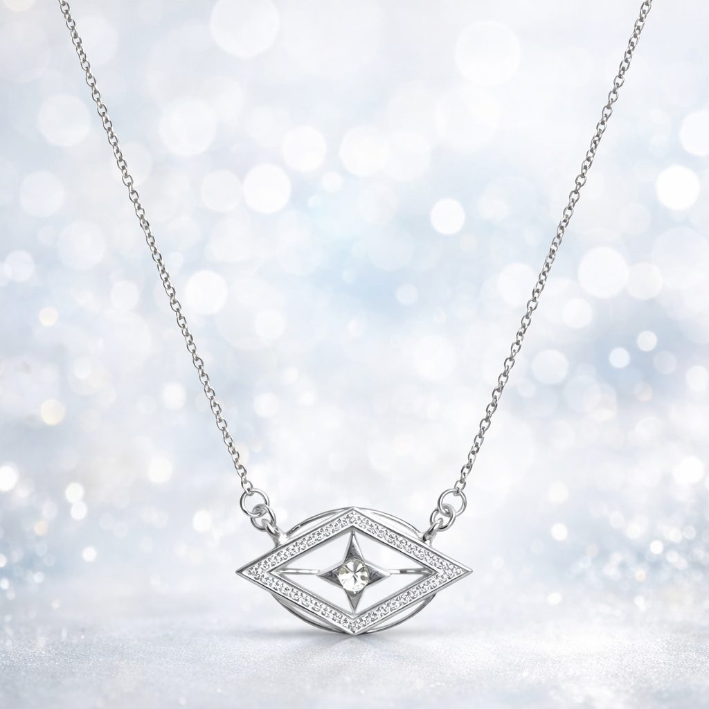 Sterling Silver pendant with a center round stone inclusions section.